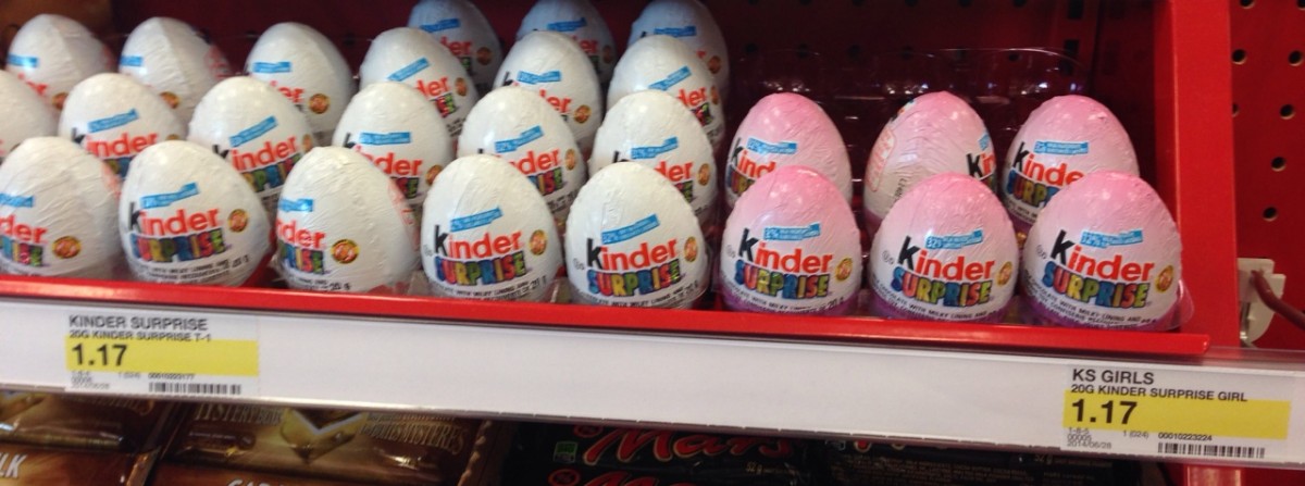 This is actually a relatively new thing, originally Kinder Eggs were all white like the ones on the left. I don’t know at what point they decided to make ‘girl’s’ Kinder Eggs, but I do not like it.