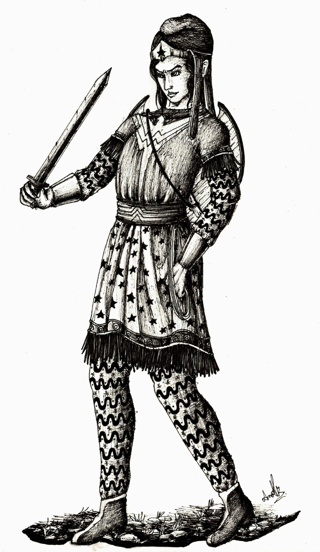 So yesterday I read this very good pant rant and I just had do draw Diana in something closer to the way the ancient Greeks depicted amazons. Not 100% historically accurate because I have no problem with the boots. I can see the Amazons adding stirrups to their saddles over time, so boots with a little bit of a heel make sense.