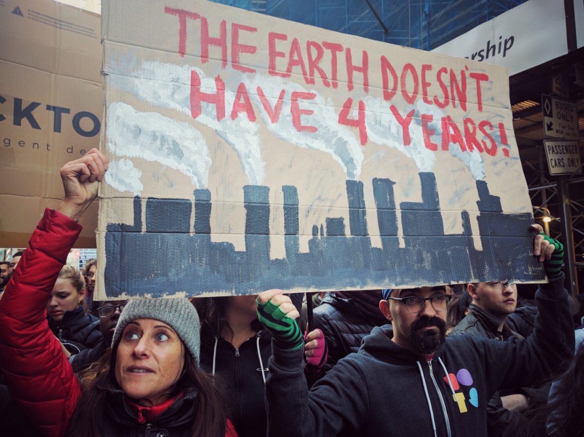 “THE EARTH DOESN’T HAVE 4 YEARS!” at Not My President protest outside Trump Tower in NYC, November 12, 2016